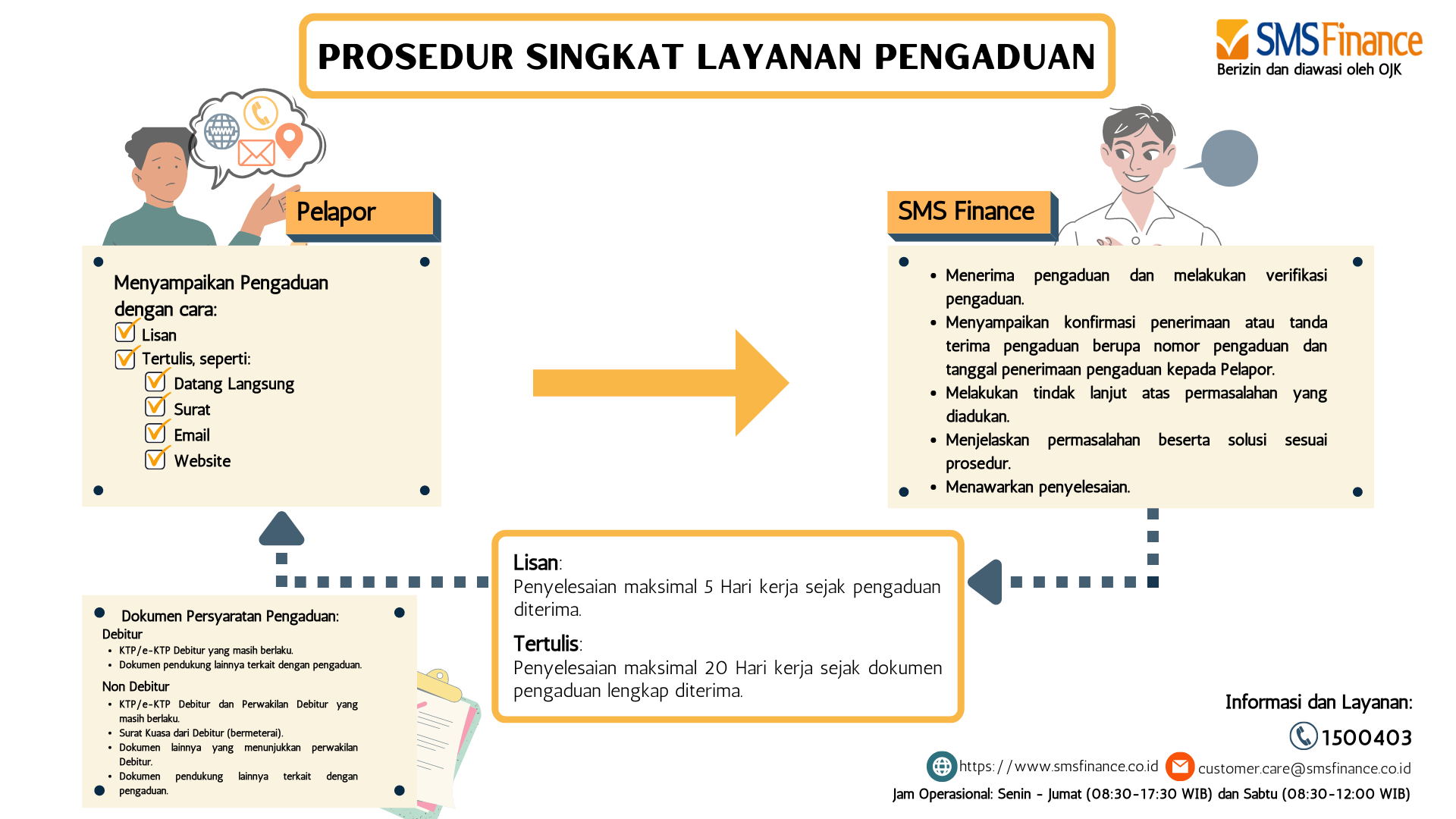 Dalam hal Pelapor menolak tanggapan pengaduan yang diberikan SMS Finance maka dapat memilih penyelesaian sengketa melalui pengadilan atau diluar pengadilan (Lembaga Alternatif Penyelesaian Sengketa Sektor Jasa Keuangan/LAPS SJK).